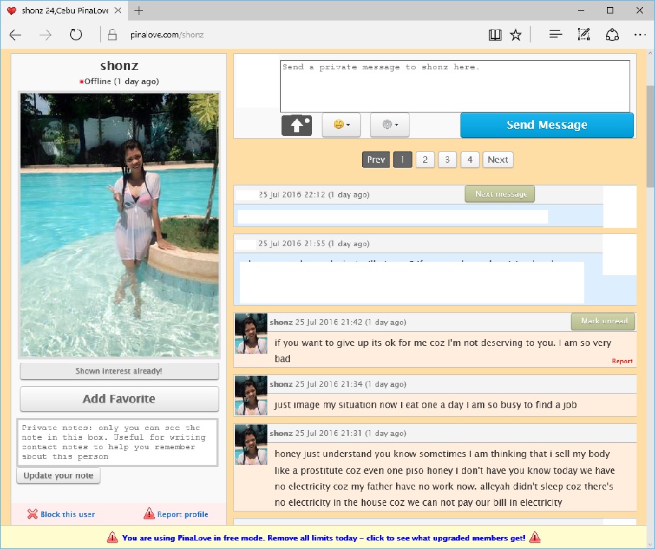 Description: -We meet each other on date in asia and we began to communicate in september of 2014, while our communication was getting further then, in november of 2014 she wrote me: